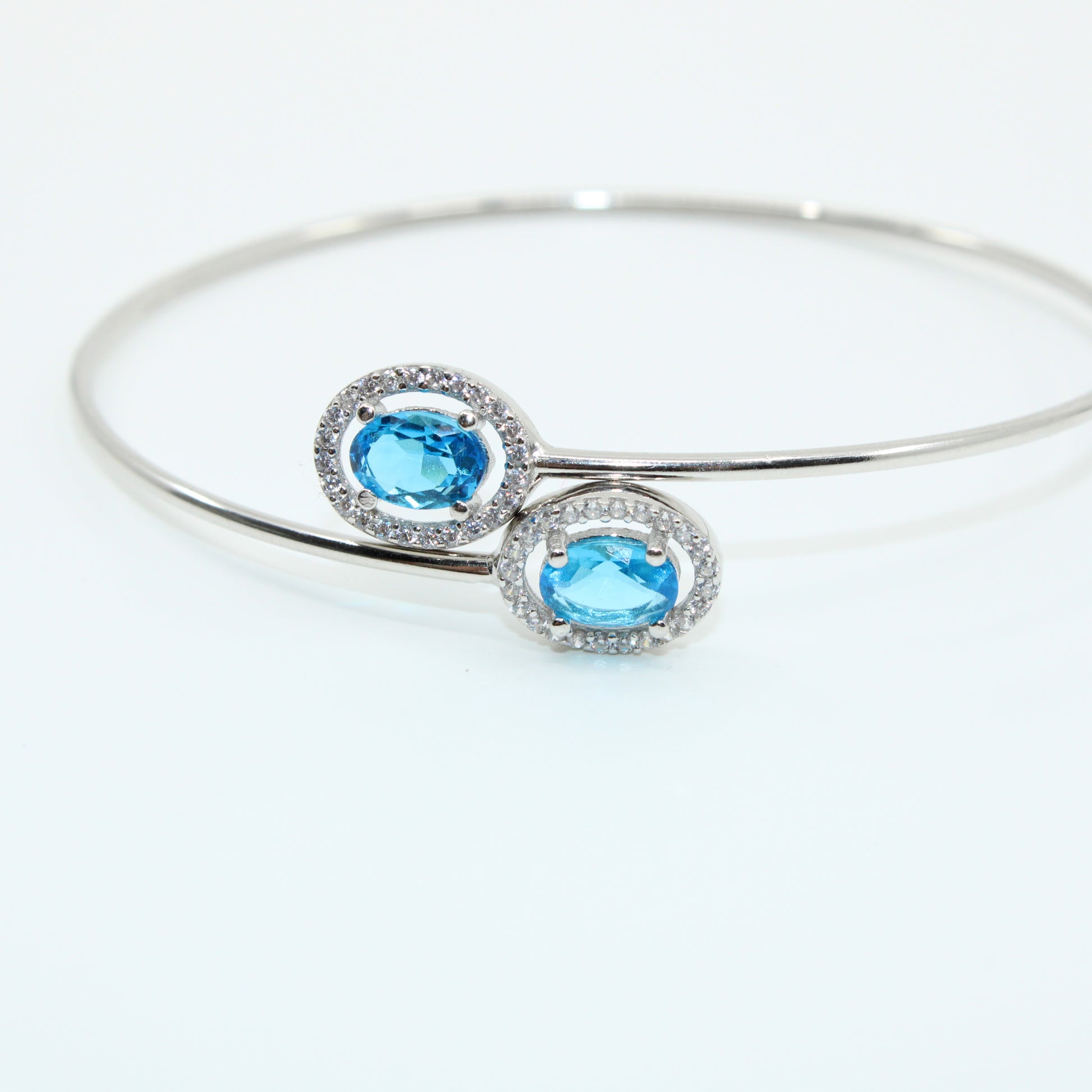 Brățară din Argint Reglabila Cristal Oval Albastru